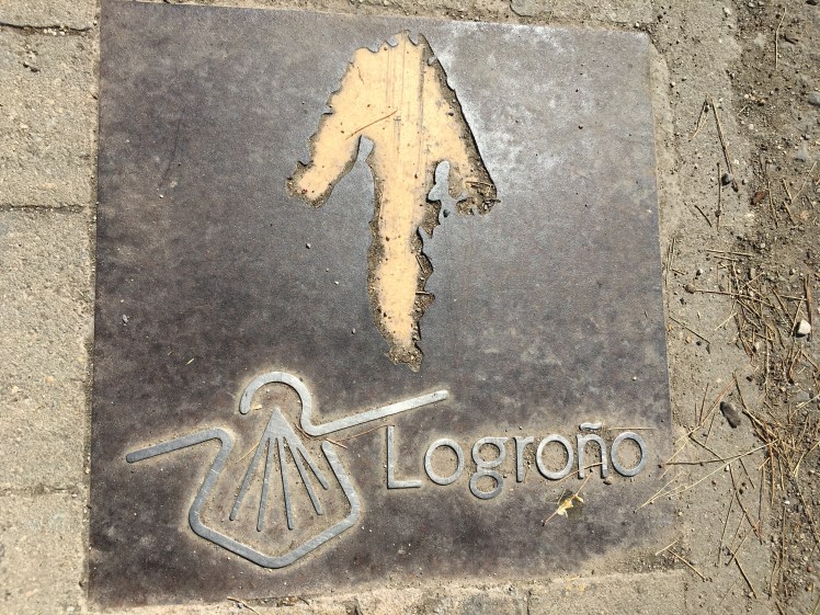 As I got to the outskirts of Logrono I came across a little shade and decided to stretch a bit, teh body was feeling a tad tired, a pilgrim passed by and said to me in very broken English, “Pain gives birth to pleasure!”. Is that not too lovely? I got another burst of energy and passed another PIlgrim who I had seen on and off for two days, a woman with pink hair ( it’s her crown I guess), I greeted her in the pilgrim way, “Hola, Buen Camino!”,  and introduced myself by extending my hand.  She was reluctant as she said her hands were sweaty, I said absolutely.  Lucie from Italy introduced herself,and I walked on.