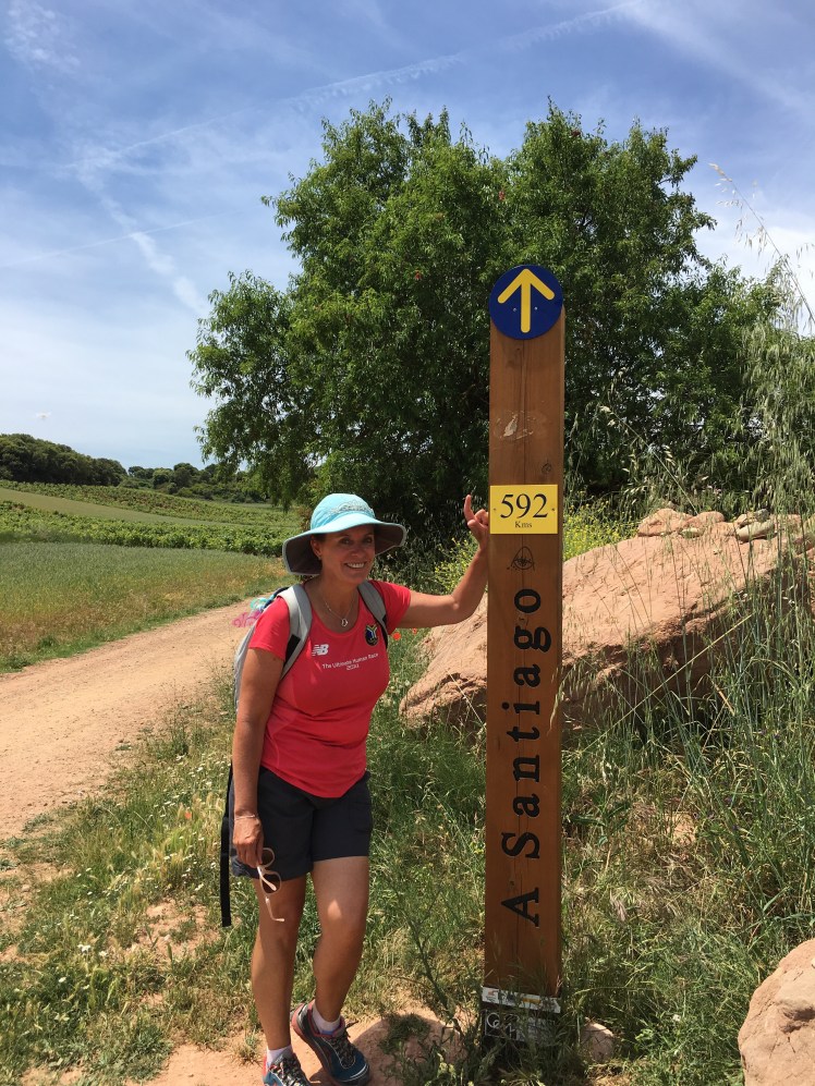 We passed another Camino musician and giggled together.  We walked and walked and walked. At some point we passed a sign that said 592kms to Santiago. Which is odd, as I’ve already done over 240 Km’s. But exciting to see anyway. We walked a long way before Najera although we could see it teasing us in the distance. Once in Najera, I found my hotel despite little info and had a long hot shower. Babra and I met for dinner and had a lovely Pilgrim dinner.  Salad, trout, creme caramel and wine and water for 12 Euro.
