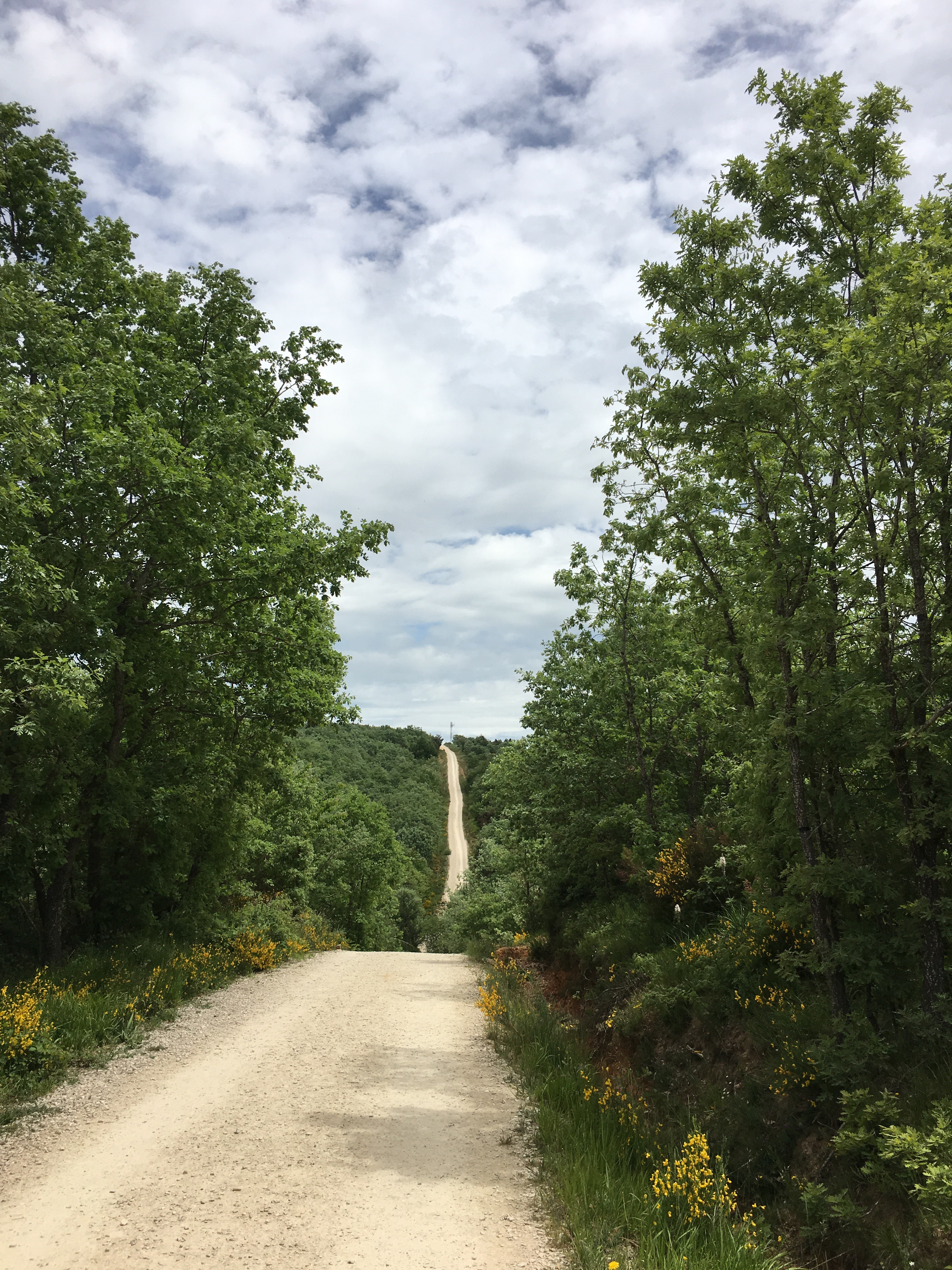 It was a long day, luckily it was overcast. The scenery was spectacular again, we walked through fields with so many green hues it was unbelievable. Areas coved in Broom.  Old bridges and powder blue skies and church steeples were always pin our sights. A long walk through a Pine forest and an Oak forest. Towards the end of the day I played Sound of Music tracks which always cheer me up. We walked into St Juan at 16h00. Tired but pleased to be there.We didn’t “collect to many countries”, as many people we said “Buen Camino” to didn’t seem to want to engage.