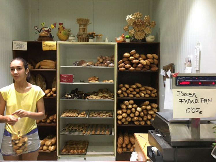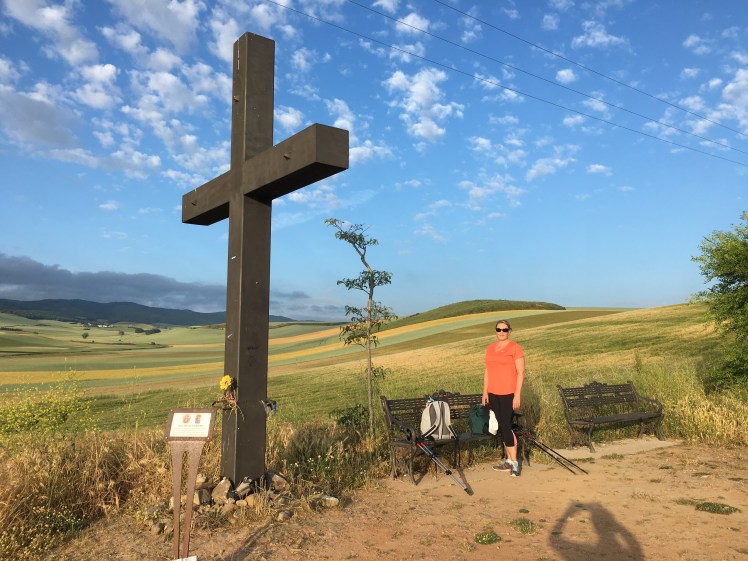 We were up at 6h00 to leave at 7h00.  We are trying to beat the heat, so leaving early is key. Sarah’s first day of walking and fortunately a “shortish” distance. Few Pilgrims to be seen, but beautiful light and no sunrise so a sure sign of a welcome overcast sky. The fields were full of poppies, and the clouds were picture perfect, almost like a water colour painting. By 8h30 we walked into Granon, where we had a delicious cafe con leche, rested and aired our feet. As we were leaving Granon, we came across Panaderia Jesus.  A bakery selling bread and “cookies” ( as the young girl serving us called them). I was not going to have anything and said to Sarah I did not need anything and she answered, “It’s not about need it’s about want!”  I  ordered a piece of Orange cake. Devine! Sarah. Had a chocolate sausage roll and an almond cookie…. Yum!!