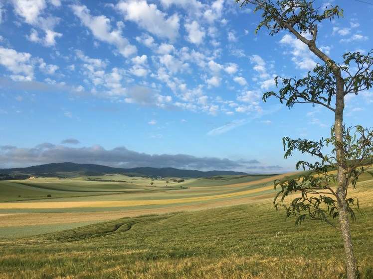 Camino gifts; Walking through fields of rich green with poppies everywhere, the watercolour skies, the delicious orange cake, walking and talking with Sarah (what a privilege again to have all this time with a friend), a coolish day.