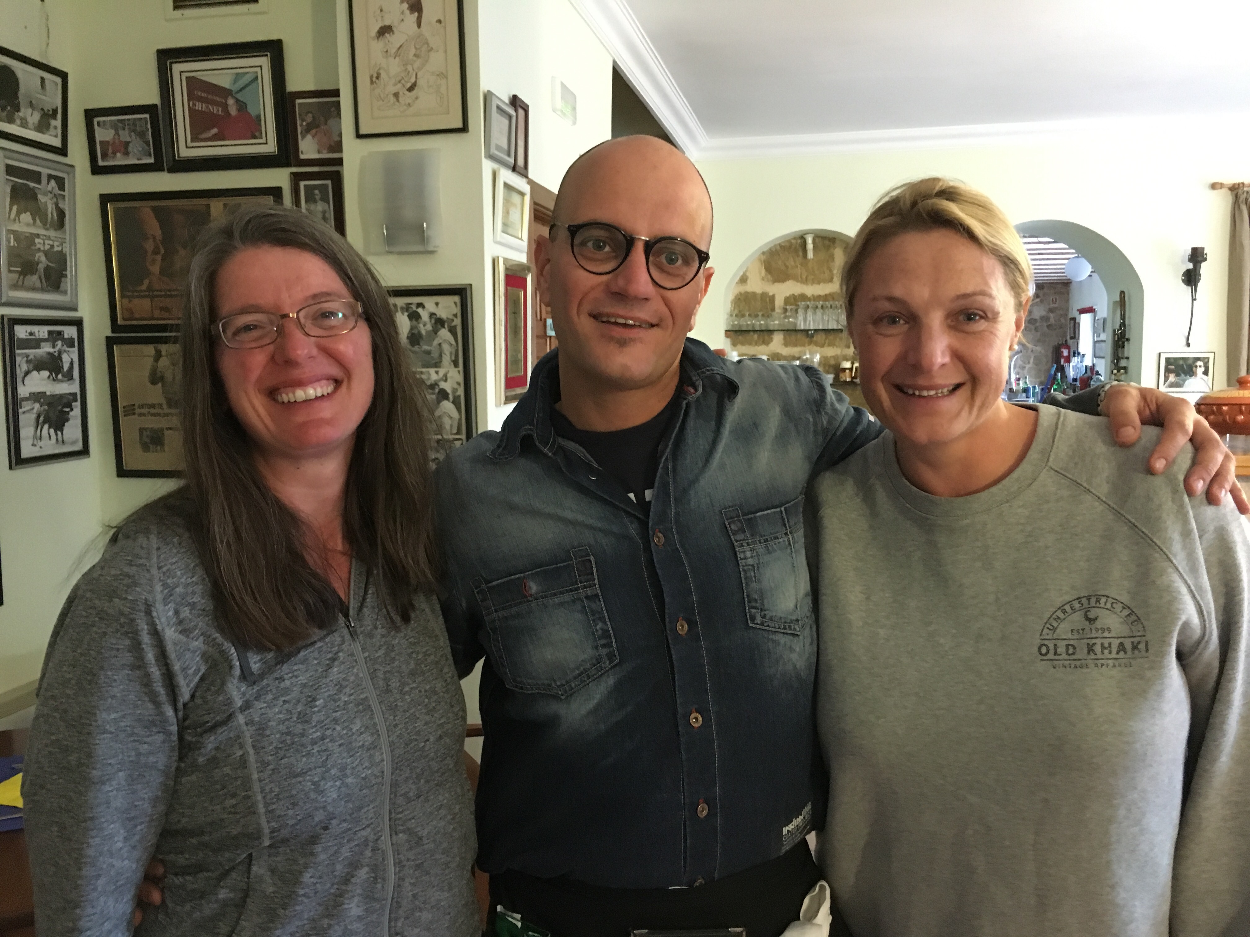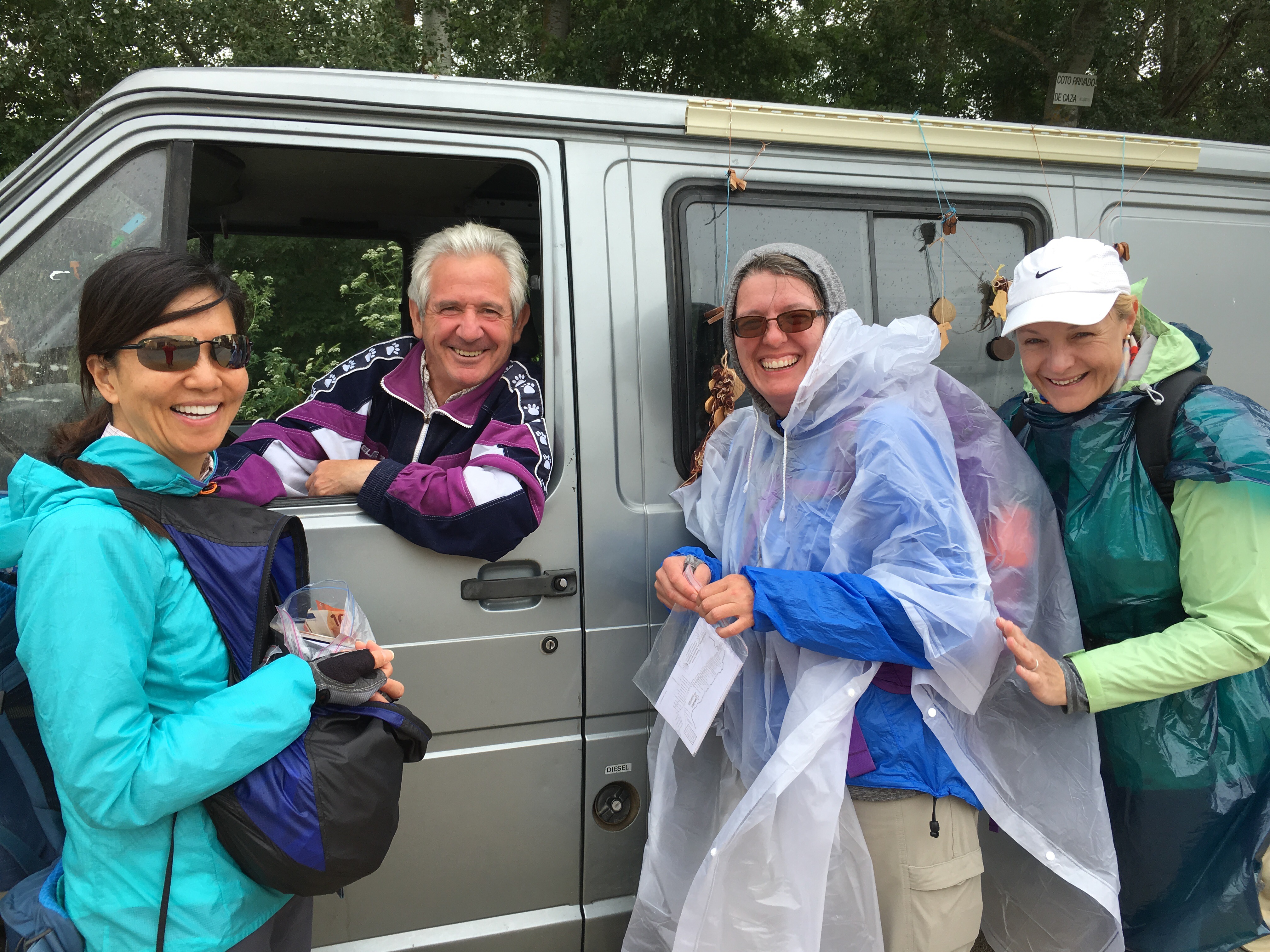 It rained a little and was quite chilly, but everywhere you looked was pleasing to the eye. We happened upon a man in a Van in San Anton (ruins of an old Pilgrim hospital), he was offering to stamp your Credential (Pilgrim passport) for E1,50, and you could choose a little wooden carving as well.  I chose a tiny shell.  We of course had to do this as stamps especially Authentic ones are very important to Pilgrims.  These exchanges of course happen with no English. As we walk away from him, I tell the girls we need to know his name.  They both start giving me tips on how to ask him.  Then follows the funniest thing ever, I ask him in English, pseudo French, and bad Spanish, and I point at myself, saying Stephany, and nothing, he just keep talking about an Alburgue somewhere. Then I suddenly have a brain wave and I point to him, and I say “Pepe, Pablo… And Stephany (pointing at myself). He laughs and introduces himself as Martien.  The  girls were of course rolling in the road, and teased me all the way to Castrojeriz.