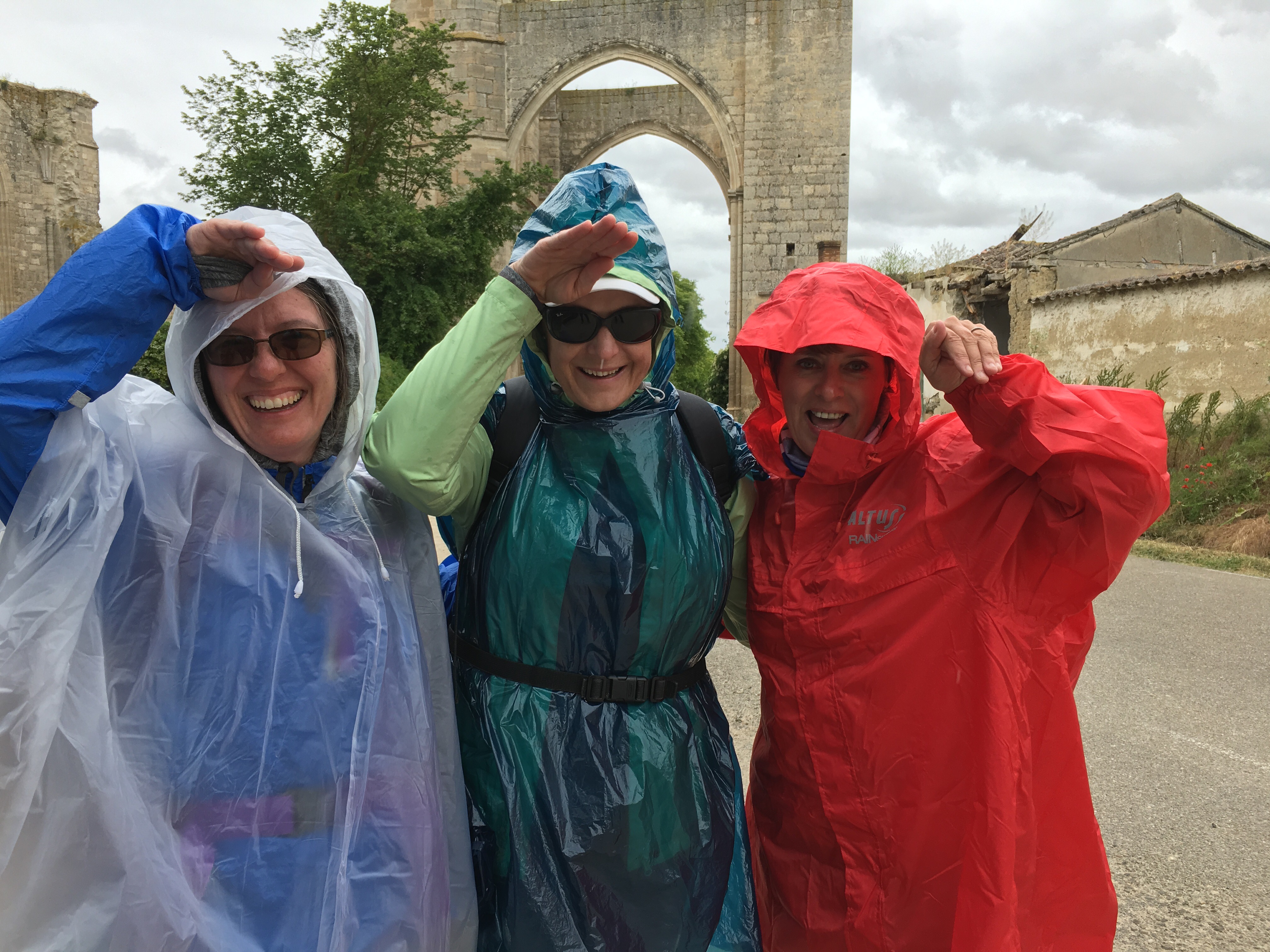 CAMINO GIFTS ; the pure joy of the Meseta, the rise of Hontanas out of nowhere, the palette of blues and whites painted in the sky, the joy is laughing at stupid things (all of us in our rain coats looking like chickens), meeting such lovely people like Martien and Davido.