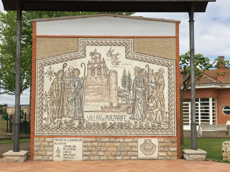 So, I was determined to take the “alternative route”. I didn’t realize when I made this call, that the town the alternative route ended in was 5kms away from the town my beloved Babar was in. So, after a beautiful, scenic alternative route I got to Villar de Mazarife and then I got stuck. I asked some locals in my Spanglish, flashing Brierley around, and I managed to understand “walk, straight, turn right, then walk six to seven kilometers”. I thought I was going to punch something. A number if very kind locals along the way kept trying to make me turn back, as I was off the Camino. Anyway, there was nothing to be done but walk in 30 degree heat to Villadangos Del Paramo. All along a busy road, at some point I had a big spider on my shoe, I played John Denver  to keep me Company, all the time cursing Brierley but also telling myself the majority of the way had been on a beautiful route, much better than the highway.  By now you probably know that five kilometers is “nothing”, but when it comes at the end of 21kms, and your head is in the 21 km zone, it is too much for the brain to handle. Anyway I got to my Hostal and all was ok again after a shower and some Aqua mineral con gas and wine.  Sadly, Villadangos was almost dead, my Hostal seemed to be the only place in town, everything else was closed or derelict in comparison to the lovely little village I had passed through – Villar de Mazarife..