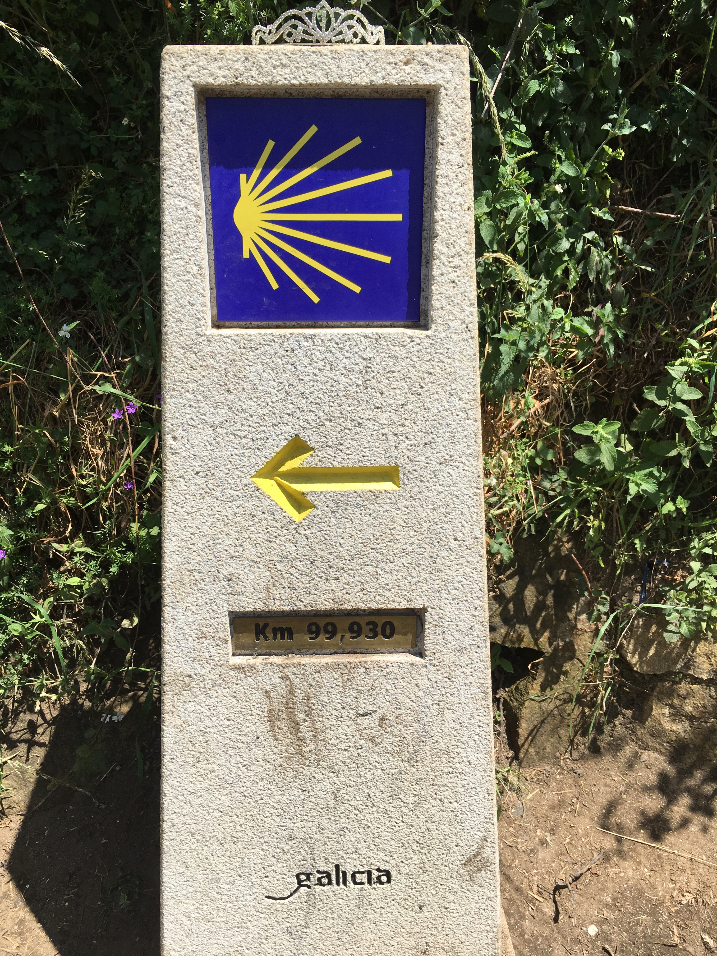 I have throughout my beautiful journey savoured every moment, I have made sure to look up and around and back, and to notice everything.  Everything form the smallest ant to the the biggest tree and mountain and sunrise. I have been commended several times by fellow Pilgrims for being so inclined to stop and enjoy and look and notice. I am making sure that I look more, and stop more and soak up every second. In Galacia (the region I have been walking through since Saturday) the markers count down the kilometers so every five hundred meters the markers tell you how many kilometers are left.  Now when you’re running Comrades or a marathon this system is really welcome as my maths doesn’t work when I’m running so I like knowing how much is left to run.  Now walking the Camino and nearing the end, I really don’t like those markers any more. What a change of mind set.  Now I just want to walk slower and slower and ignore those markers.