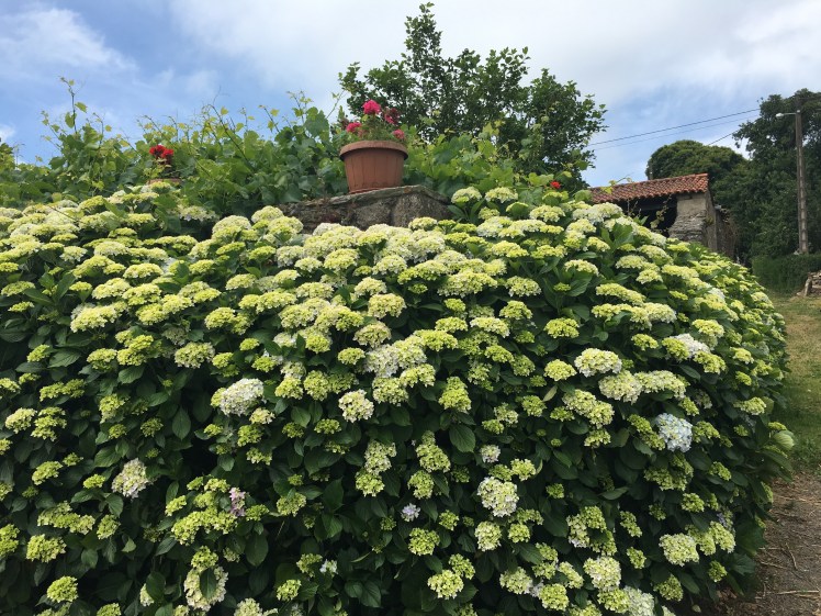I started my day at 6h45 as I knew it was far and I wanted to get ahead of the heat and the hordes.  The 112 Km’s from Sarria to Santiago is completely overrun by “non Pilgrims”.  Groups of school kids, church and tour groups.  It is all somewhat disconcerting after 34 days of quiet and bliss. These groups walk at break neck speed and walk on your heels until you move, no one attempts to say “excuse me”, they just walk and walk,and talk at the top of their voices. It is all a little overwhelming. So, today as I get moving I meet a lovely young woman called, Isabella from New Orleans.  She was clearly a bit sore and a bit down. We were both feeling a bit shell shocked by the hordes of people.  We walked together for awhile, moaning a bit about the numbers of people.  We both almost started hyperventilating when we looked back to see hundreds of people.  We were both spiraling into negativity.  Suddenly I said to Isabella, “Breathe, keep walking and tell me about your Camino highlights so far!” We spent a delightful two hours completely distracted by one another’s Camino stories and suddenly the hordes did not matter. We walked together until Portomarin and both declared that we had a beautiful walk because of one another. We forgot all about the hordes and made our Camino as special as every other day we were on it. Making our own weather!  What’s that song …. “Everywhere you go, always take the weather with you …..!” Warwick will know it.