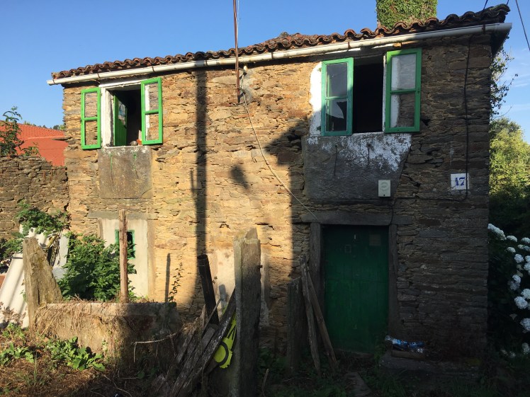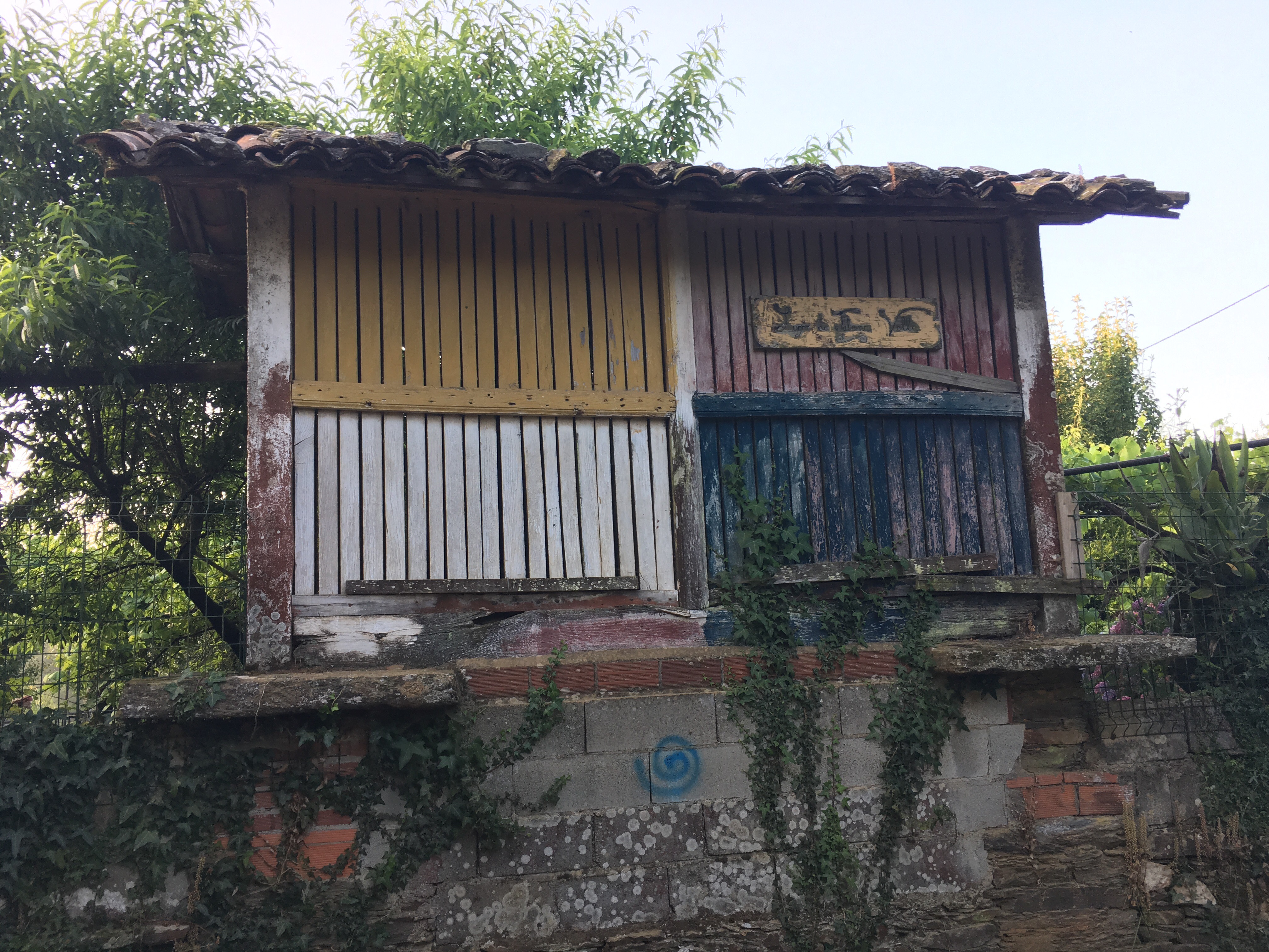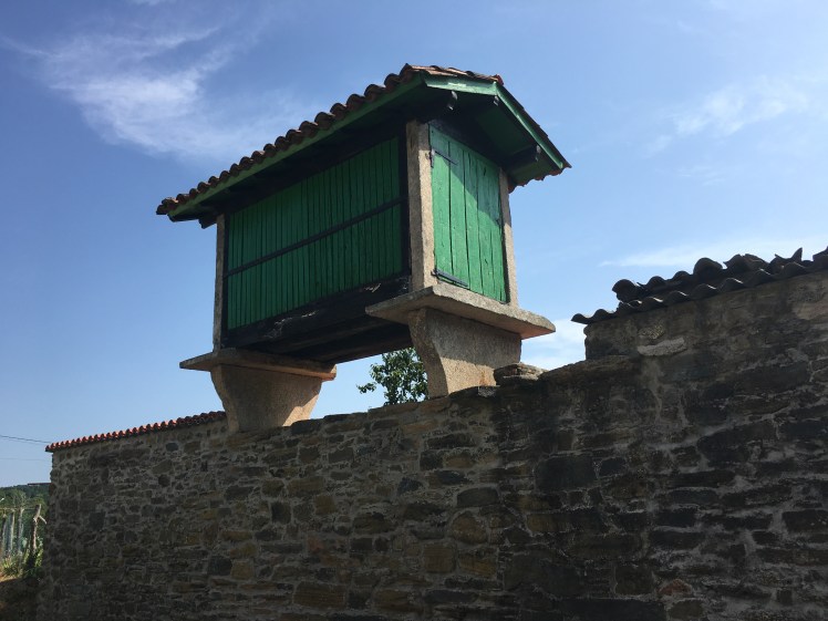 The last few days as we walked through farmland we have seen hundreds of these, called horreos, they were I think used for storing grain. Now I saw only one with grain in the rest looked empty or stacked with other stuff. A storage space.