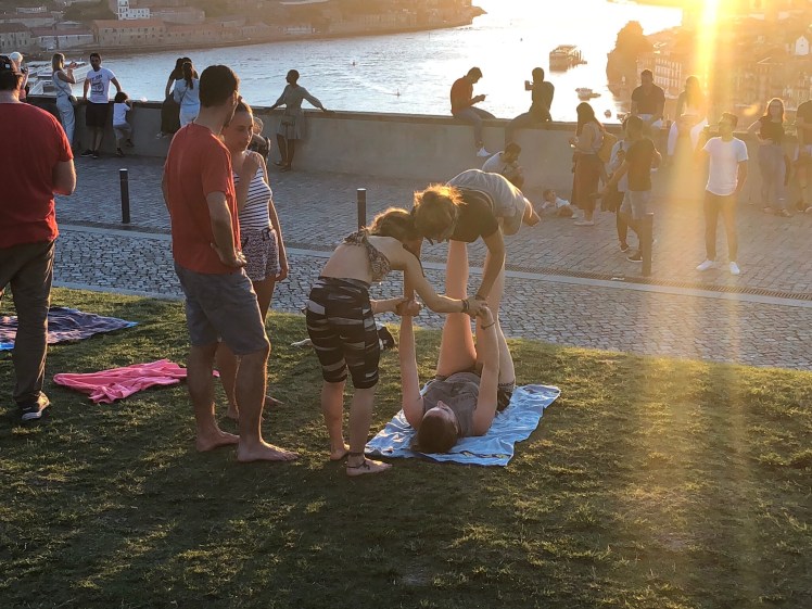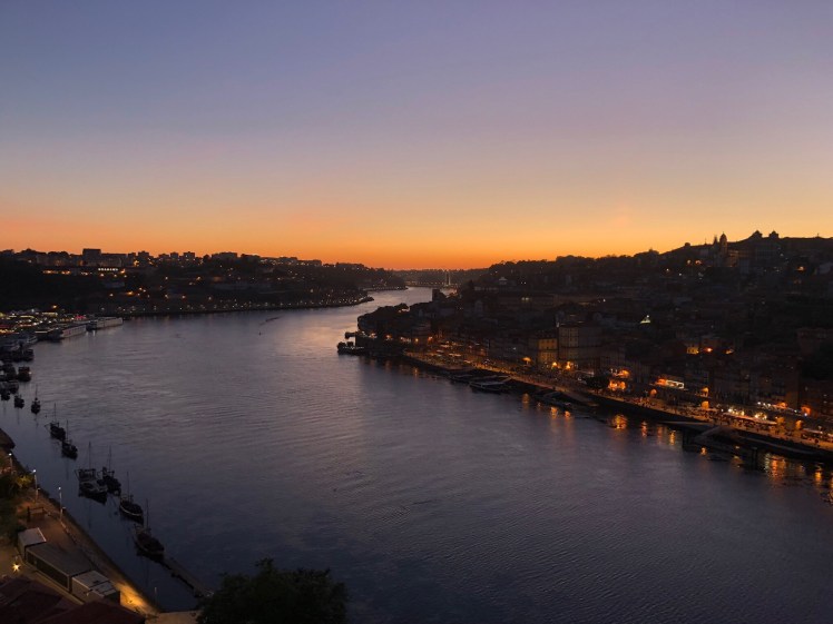 I went exploring as soon as I had settled in. I had no idea what direction to walk in but wanted to find the Duoro river and the Cathedral. Miraculously i stumbled onto the Dom Luis I bridge and walked across it to discover a patch of grass resembling an amphitheater with hundreds of people waiting fr the sunset. It was so energising Music playing, drinks being sold, picnics happening. Watched a group of young people doing acrobatics. Enjoyed a G&T watching the sun go down over Porto. I love stumbling onto unexpected surprises on my travels.