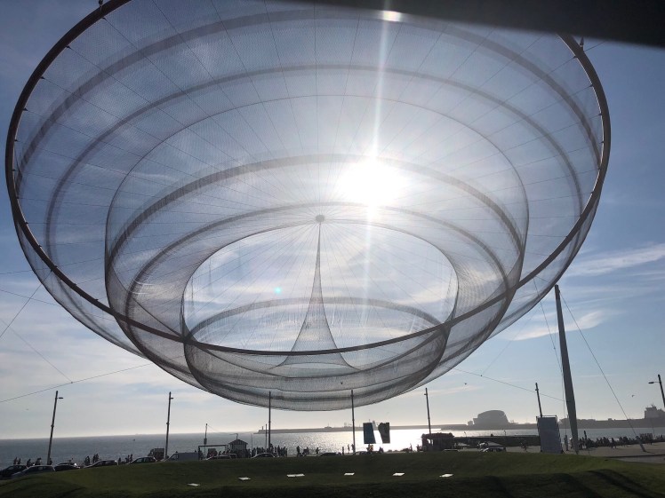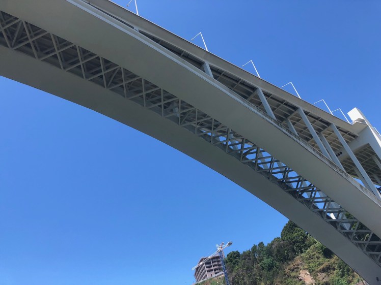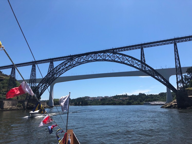 A hot hot hot day on the bus watching the Porto world go by. A cruise on the Douro to explore the six bridges. What magnificent structures! Lunch in a side street cafe. Back on the bus to go out to Matosinhos. Not that fun, huge traffic jams, but still beautiful.