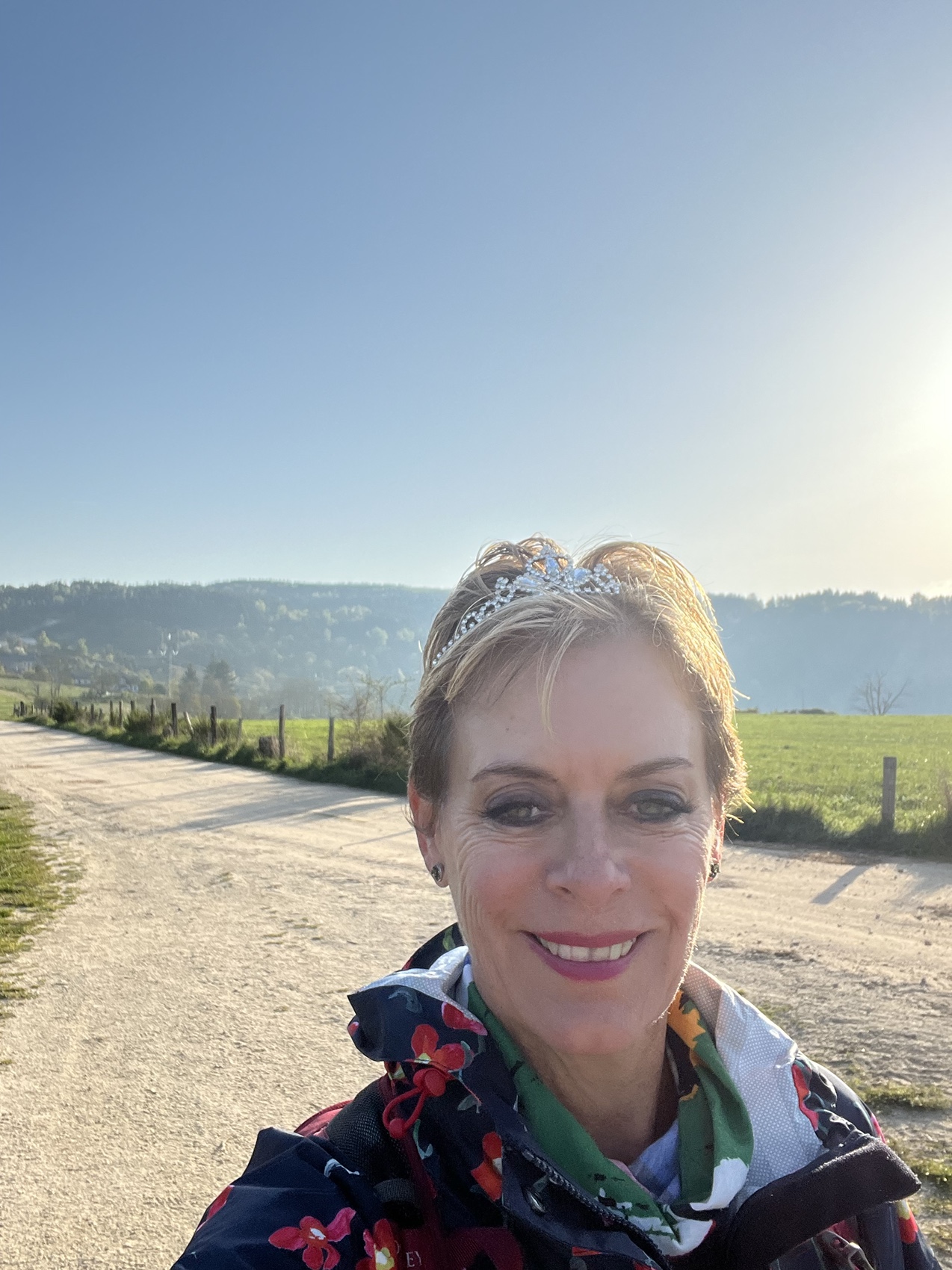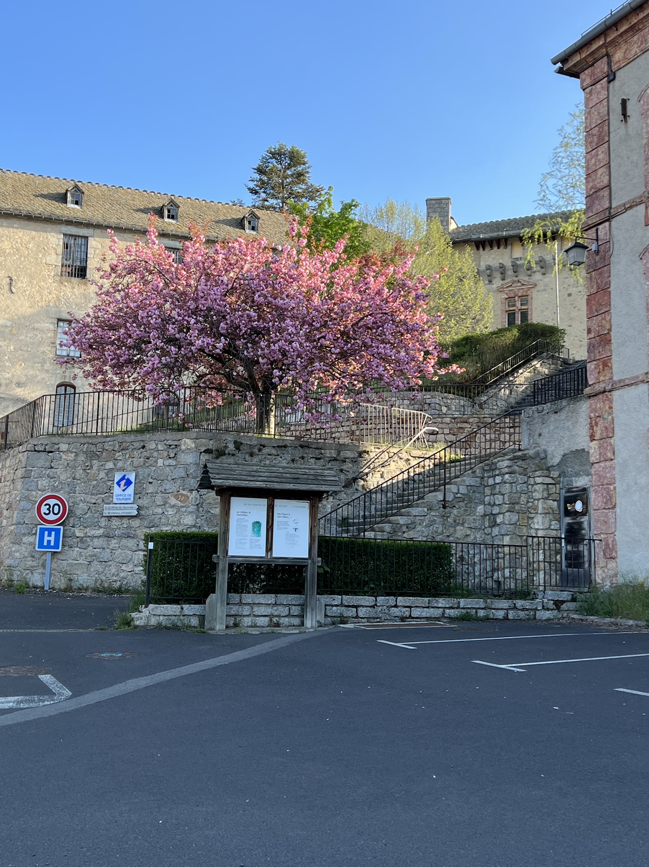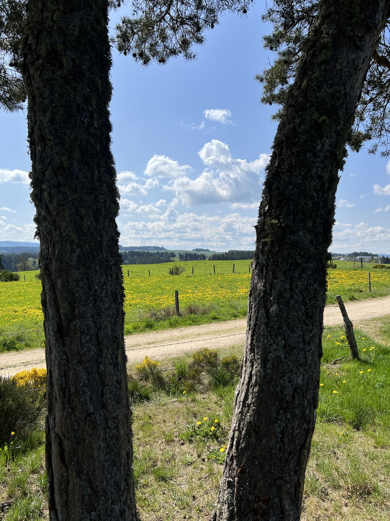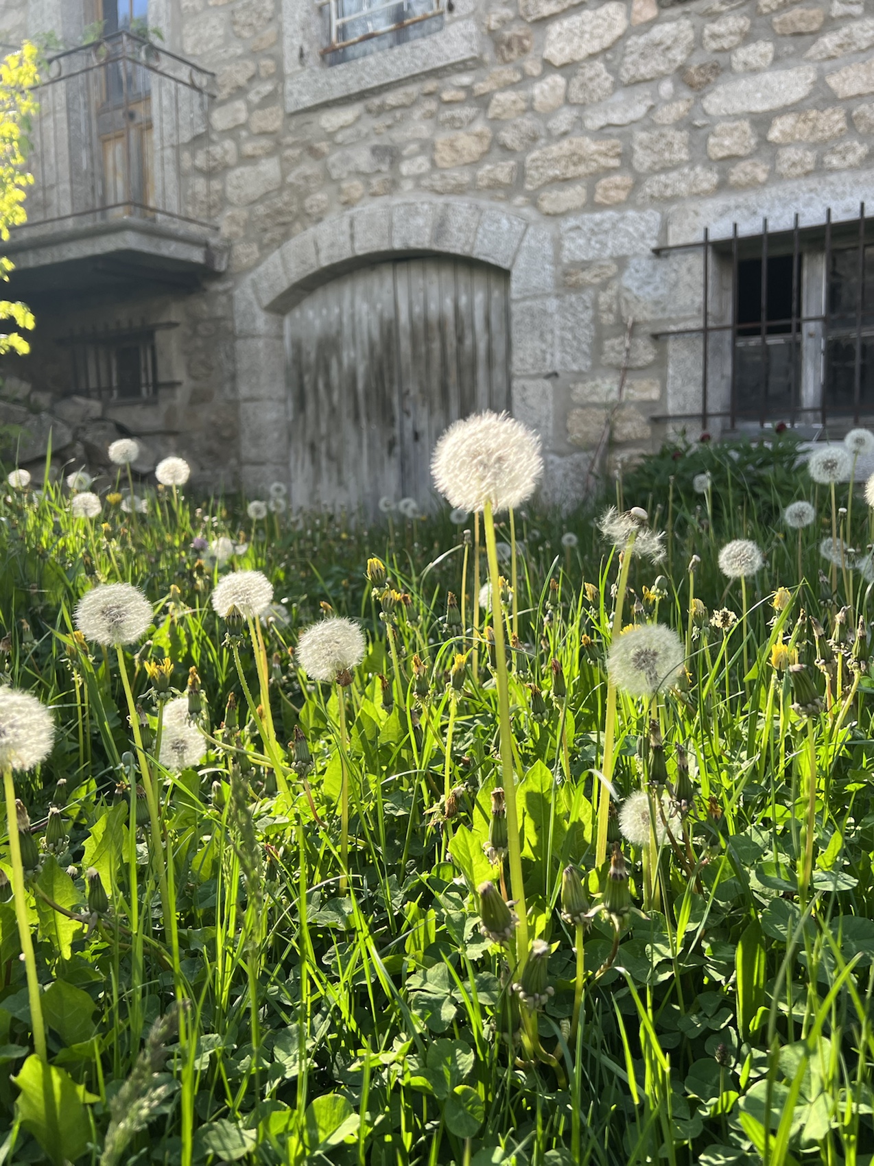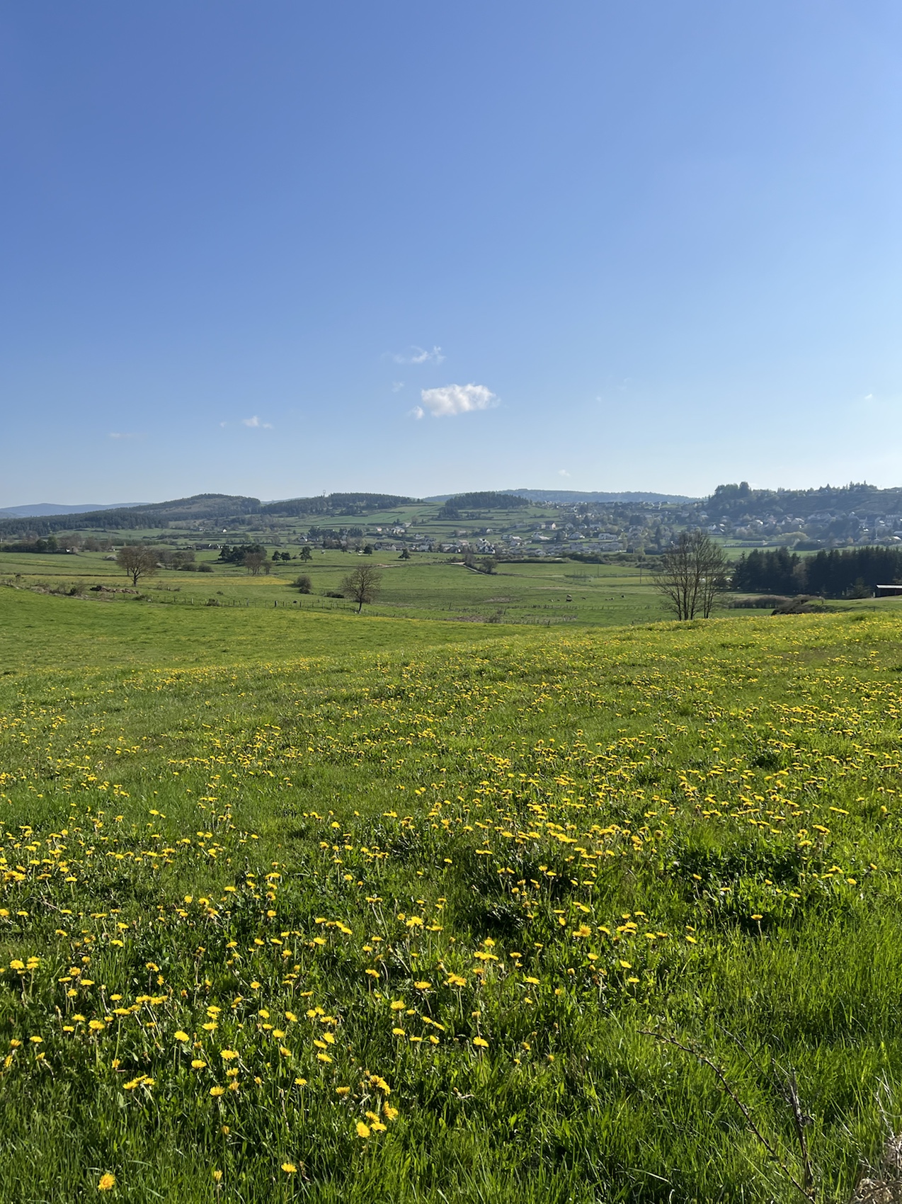 The walk is tough it’s up and down again and through forests and little farm roads. It delights me around every corner. The dandelion fields (today no daffodils), bubbling brooks, the sound of cuckoos all morning. I pass charming little hamlets with no people in them but gorgeous to look at. I see no one. I decide to have my packed breakfast picnic at the top of one of the hills and I bump into Jennie. I walked with her for awhile and then off she went up the hill. Later I bumped into Anne and Charles from the UK. He recognized me from a private Camino Facebook group I belong to. I chatted to them for the last 4kms into the charming town of Aumont-Aubrac.