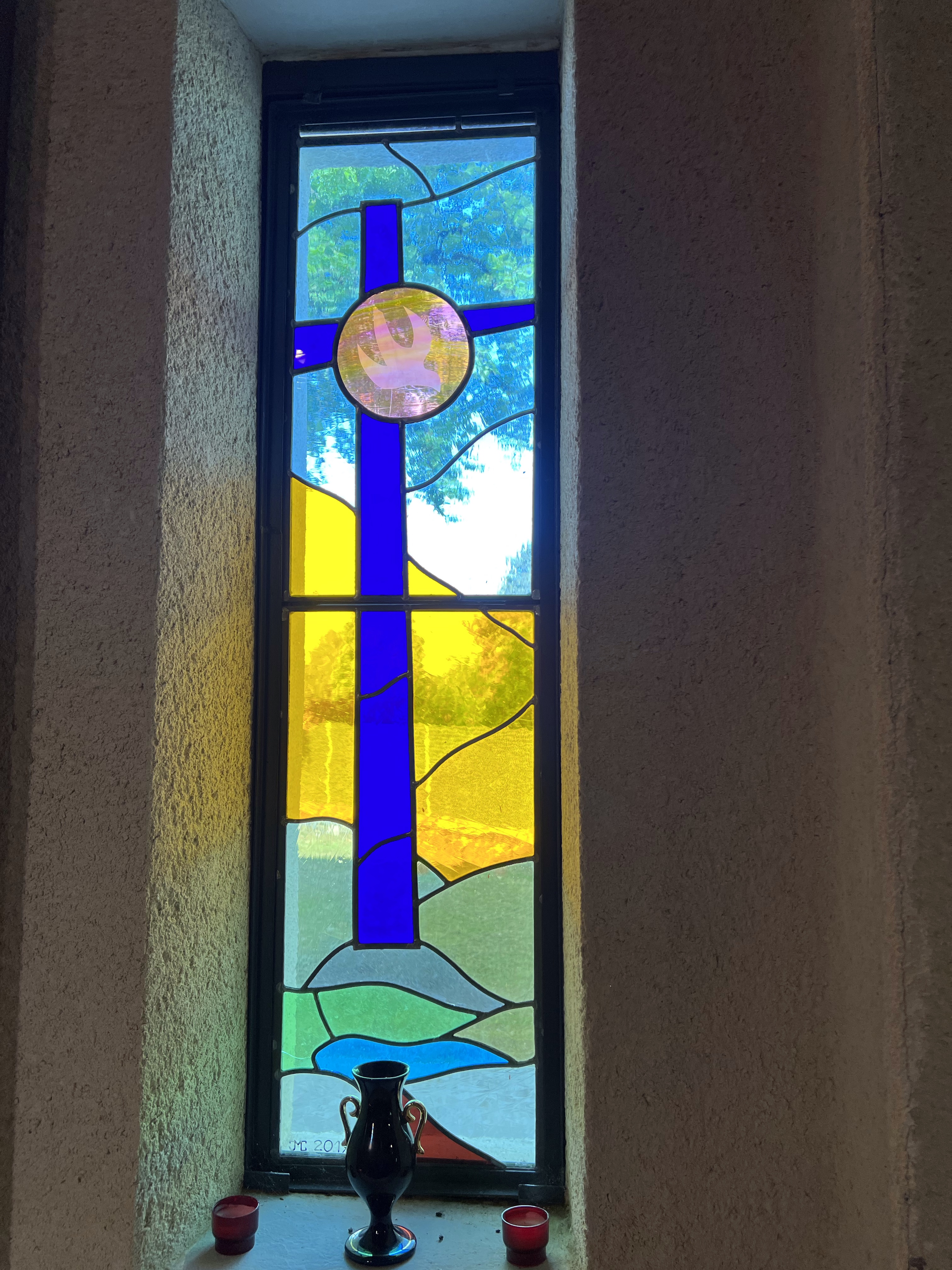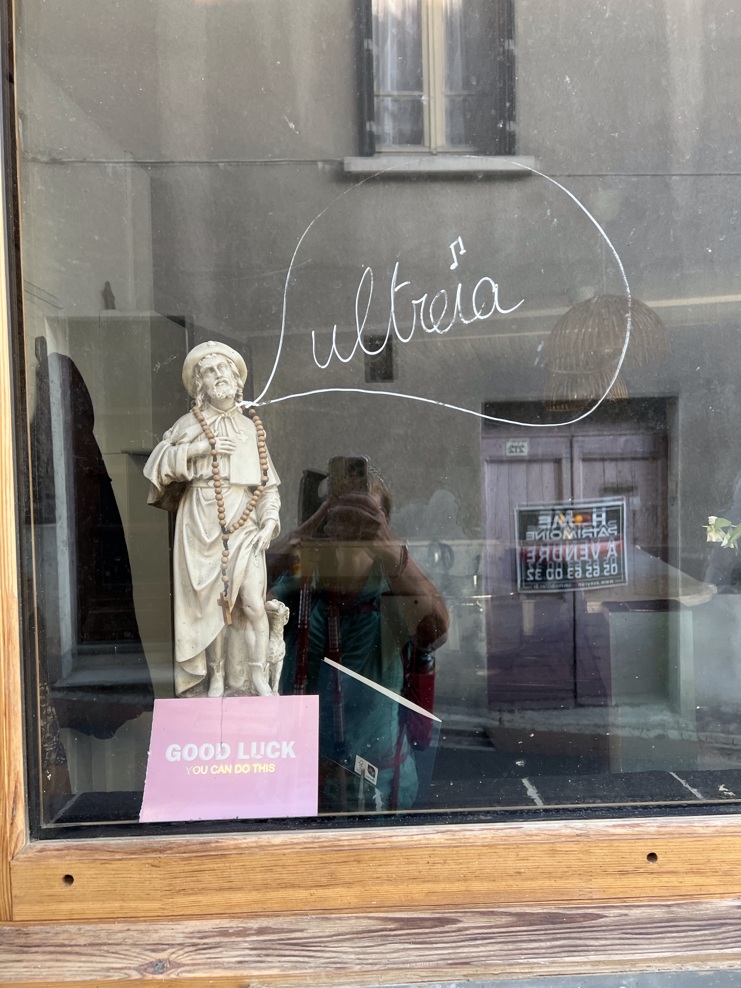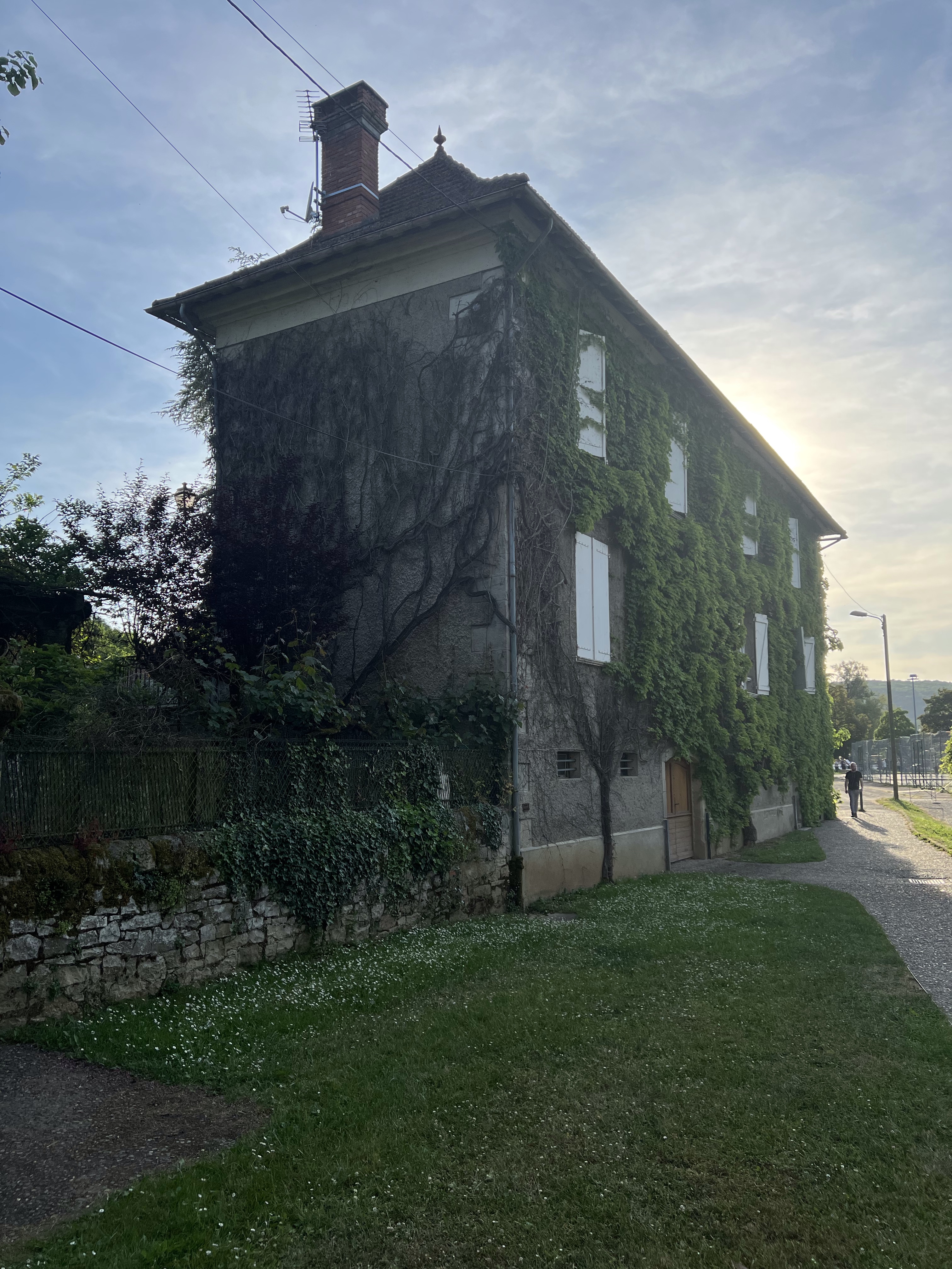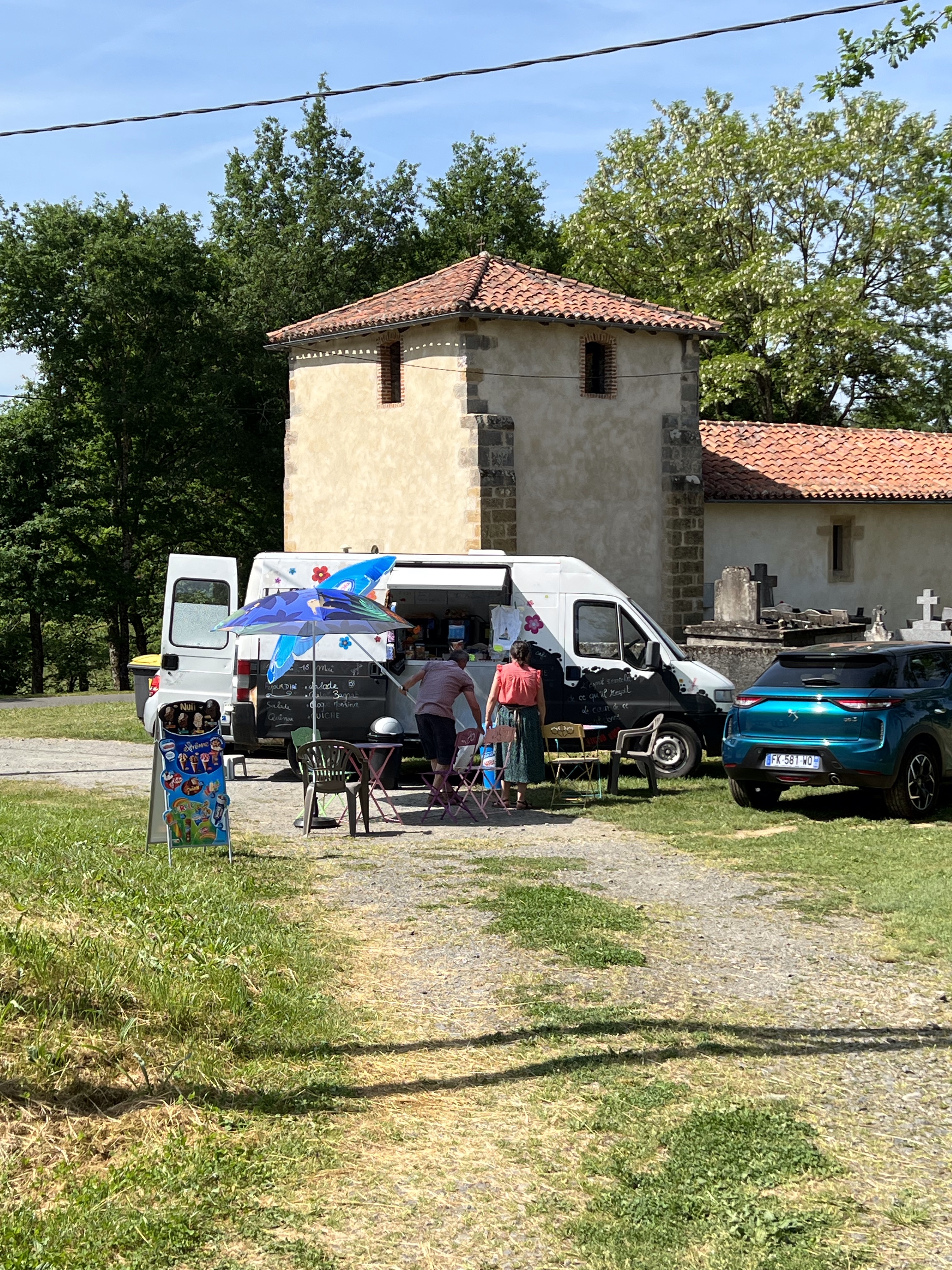 I saw no one. I felt like I was on this Chemin de Compostella all on my own. I walked into Montredon at 12kms to find a beautiful Chapelle and a Pilgrim rest room. For a donativo (donation), you can make yourself some tea, coffee or water and have a piece of cake. I put a donation in the box and got myself two pieces of cake (those wrapped in plastic, but bloody delicious). As I stepped out of the little Pilgrim refuge I saw a Gite offering coffee. I decided it was time to eat what I had in my backpack and have a coffee. I went in and in my best three words of French asked for a coffee. The hostess invited me to sit in the garden, which was charming.