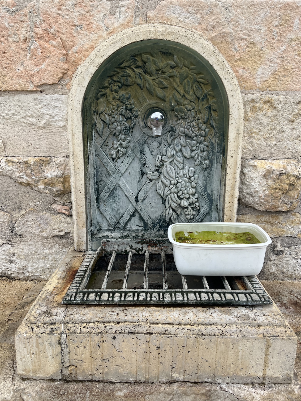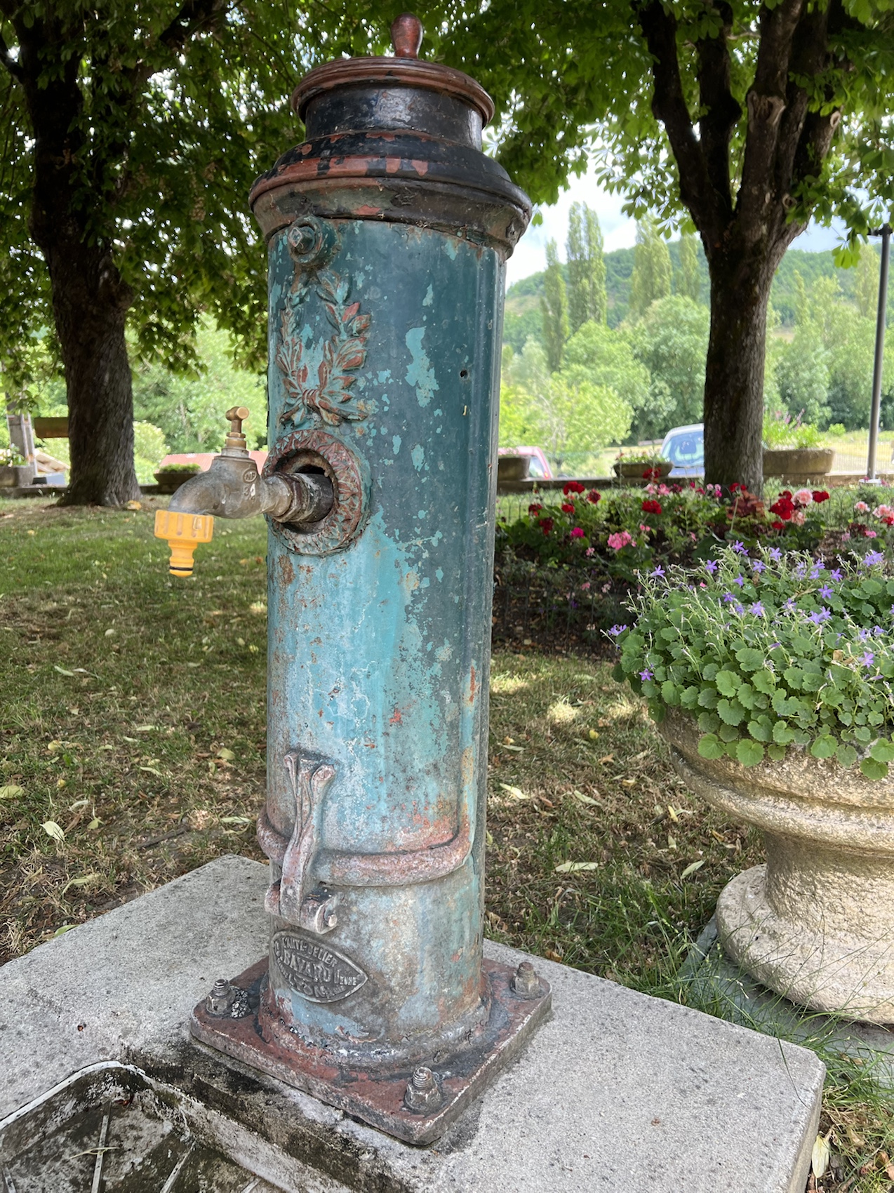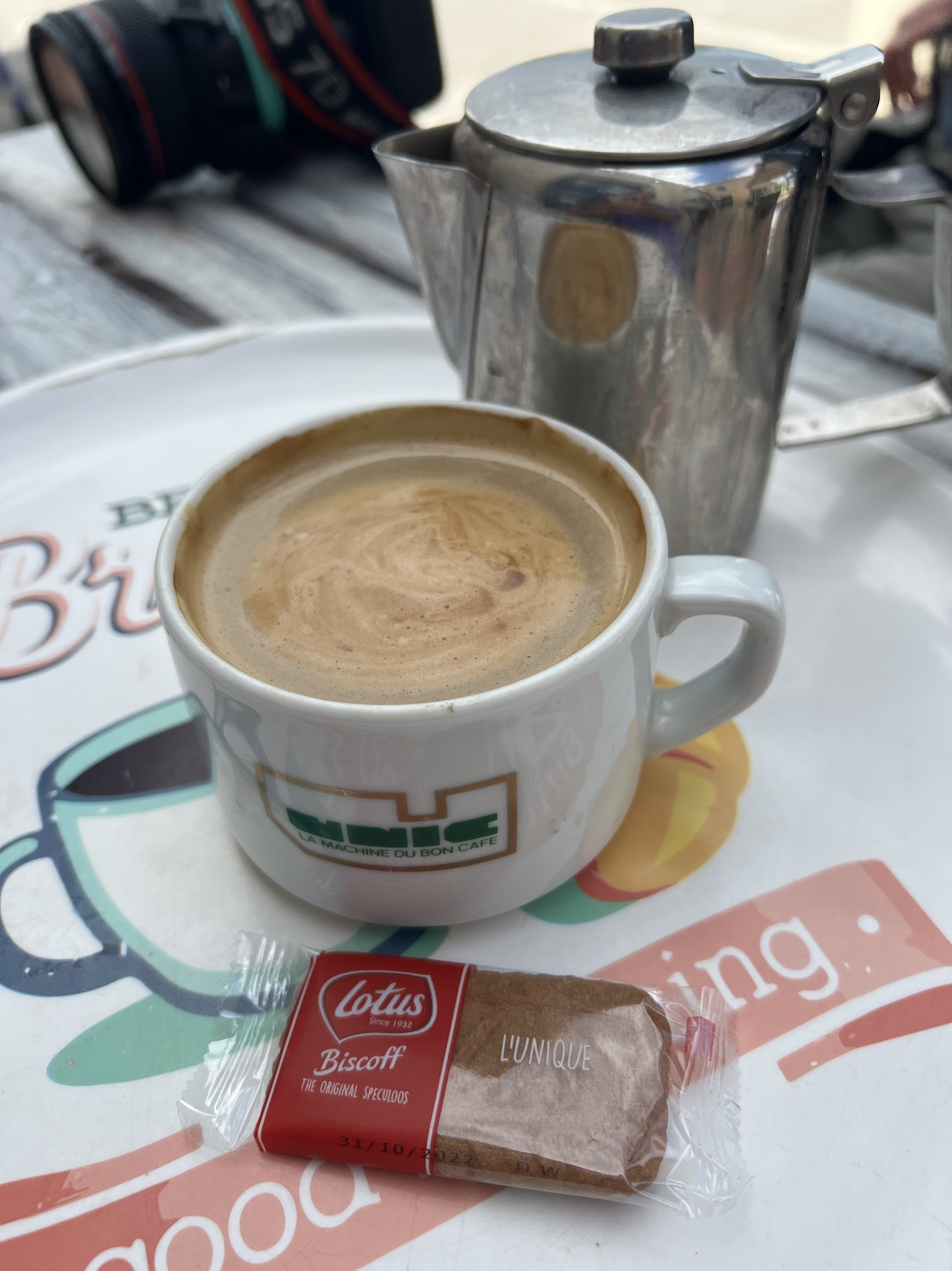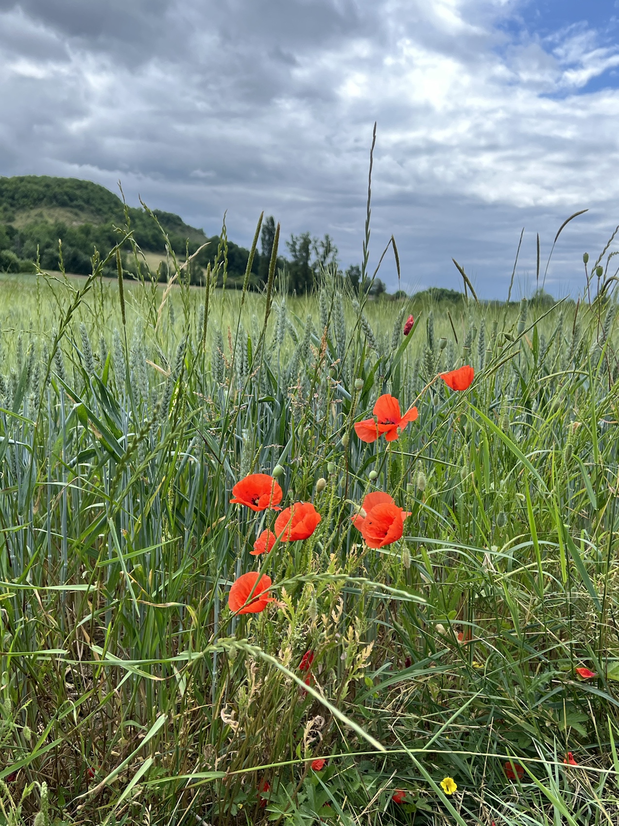I stopped for a coffee in La Bastide-Marnhac where I recall Warwick and I stopped too when we dipped into this Chemin in 2019. The coffee was super delicious and the little biscuit that came with it even better. I was determined to look after my feet today so my socks and shoes were off for the required 16 mins and I enjoyed the coffee. There was a beautiful old 2cv parked in the lot when I sat down. The fifth one I’ve seen since Paris. Warwick and I play a game of spot the 2cv when we’re in France, it’s fun!