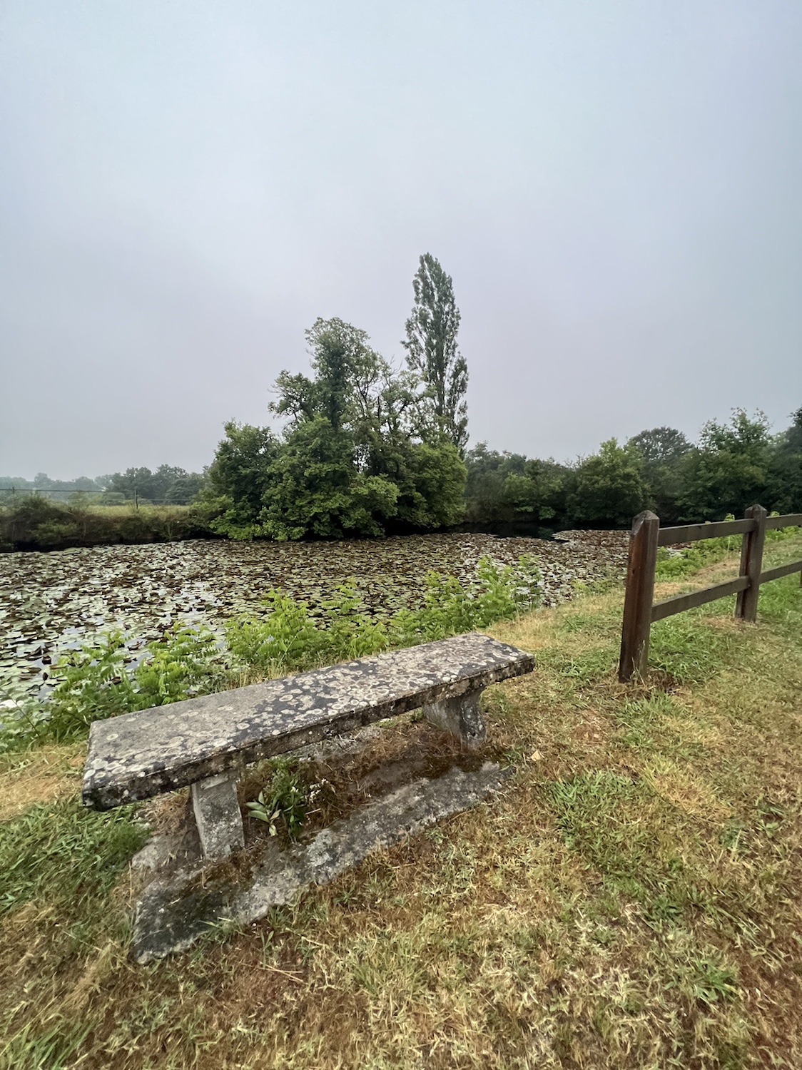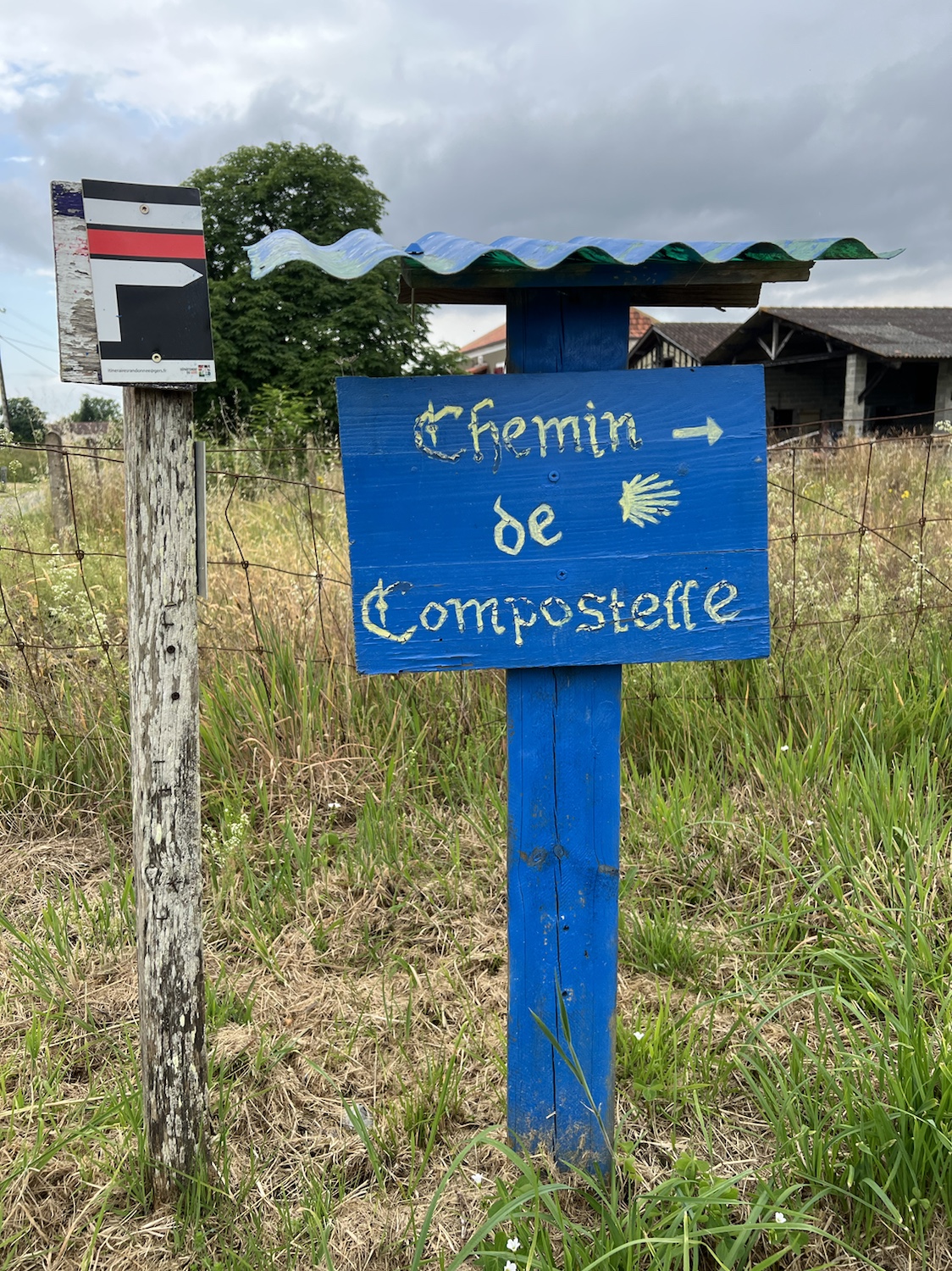 I’d already scouted the day before and knew there was a bakery open at 6h00 for a coffee and a chocolatine. I’m becoming quite accustomed to breakfast and pastries at that. Need to kick this habit fast. Delicious on both counts. I set off in very cool overcast weather. I never saw a Pilgrim for at least the first 5kms. Everything looked mysterious and eerie veiled in a light mist. I found myself singing “Time warp” from Rocky Horror and dancing as I walked. I had downloaded the album a few days ago as it kept popping into my head.